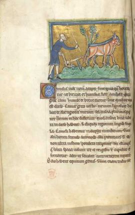Un bouvier gardait et menait les boeufs lors des travaux de charrois et de labours